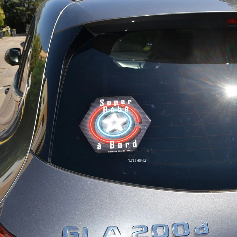 L’adhésif bébé à bord Irréversible Bijoux a la particularité d’être fabriqué grâce à un procédé unique : le doming qui consiste à déposer une résine polyuréthane transparente sur un support adhésif qui, en séchant, prend l’aspect d’un dôme pour mettre en valeur les imprimés reliefs et ainsi accentuer l’impact visuel sur le conducteur derrière vous. De plus, au bout de quelques semaines, le soleil et les intempéries renforceront la colle adhésive, personne ne pourra vous le piquer ! Grace à ce procédé, l’adhésif restera brillant et ses couleurs éclatantes pendant longtemps !
