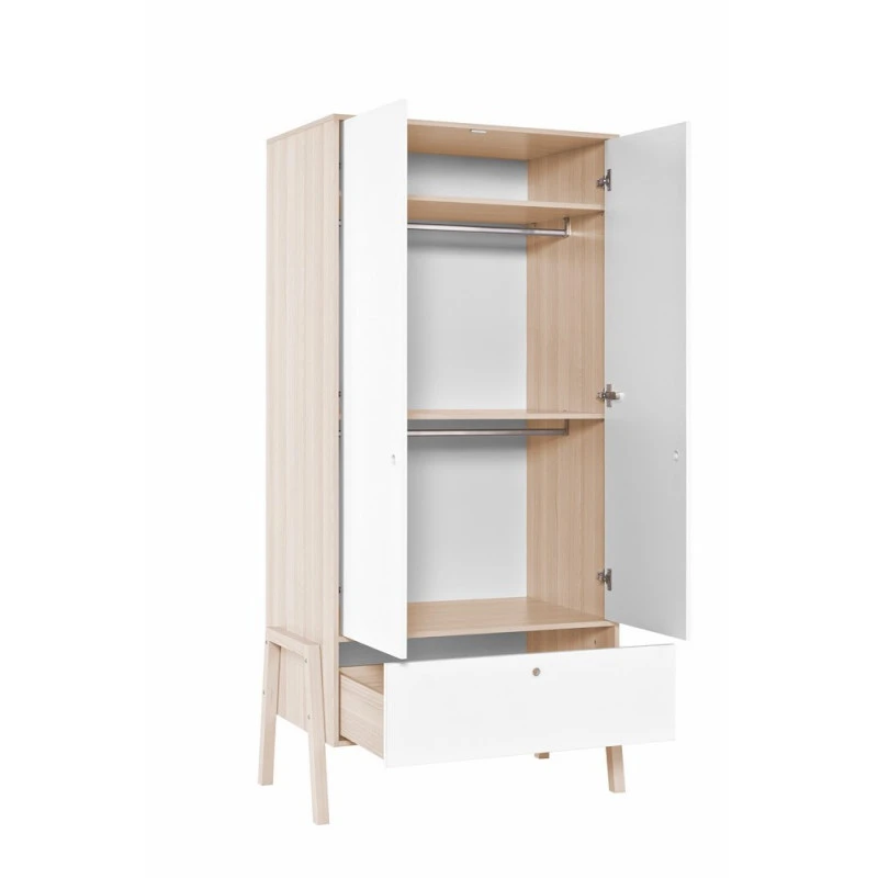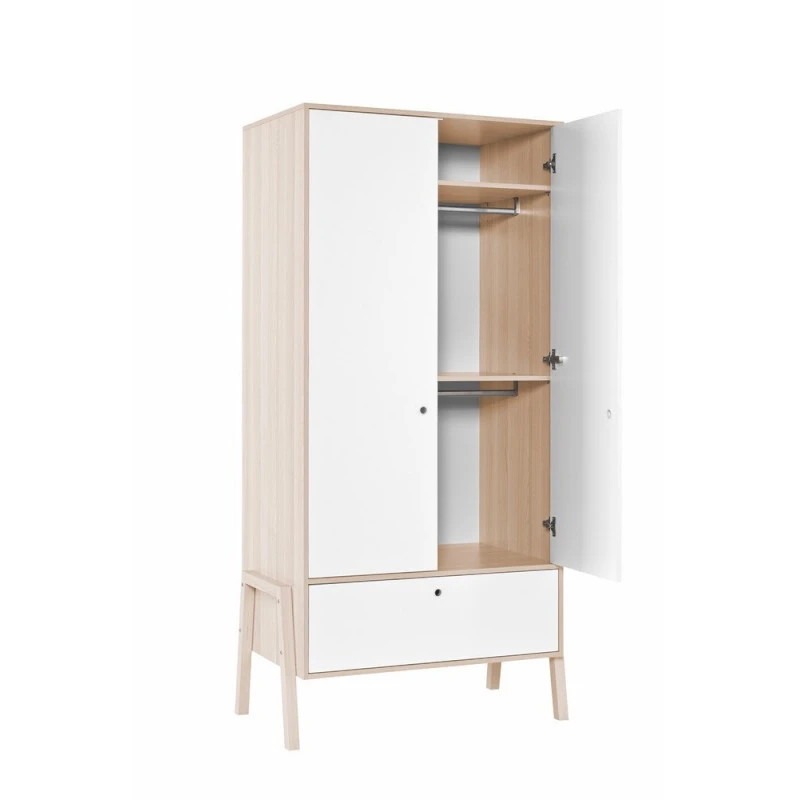 L’armoire Spot par Vox est très spacieuse grâce Ă ses 2 portes et son tiroir de rangement. Elle est Ă©quipĂ©e de 2 grandes Ă©tagères et de 2 penderies en plus de son tiroir extrĂŞmement spacieux pour ranger les vĂŞtements et accessoires de votre tout-petit. L’armoire Vox est dotĂ©e d’un design de type scandinave aux lignes sobres et Ă©purĂ©es. Sa finition en pin naturel massif et blanc apporte Ă la chambre de bĂ©bĂ© une ambiance chaleureuse et Ă©lĂ©gante ainsi qu’une qualitĂ© irrĂ©prochable.