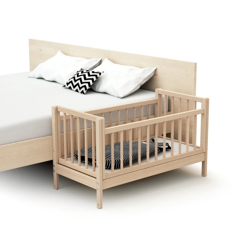 Si vous le souhaitez, vous pouvez également l’utiliser en configuration cododo en abaissant une galerie et en le fixant à votre lit (largeur de lit de 180cm maximum). Vous pourrez ainsi dormir tout près de votre bébé, pratique lors de l‘allaitement, les tétées nocturnes n’en seront que plus faciles et confortables, pour bébé comme pour maman !