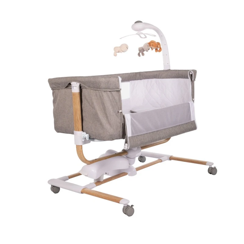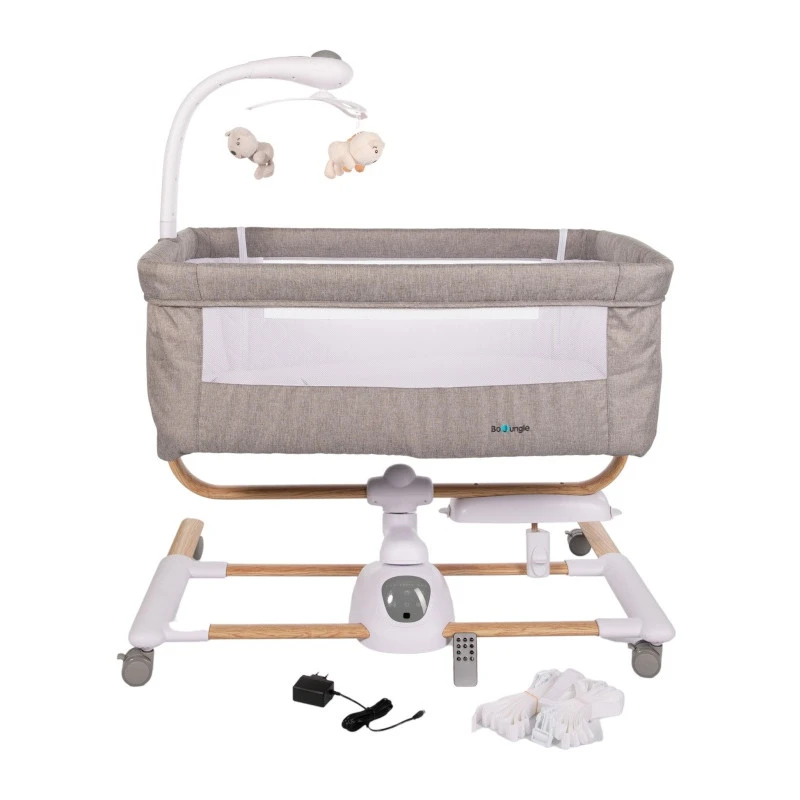 Ce petit berceau est équipé d’une fonction révolutionnaire : le basculement automatique qui permettra à bébé de s’endormir confortablement tout en étant bercé. La télécommande incluse vous permettra d’activer le balancement ou la vibration du berceau et d’en contrôler la vitesse mais aussi de le faire pivoter.