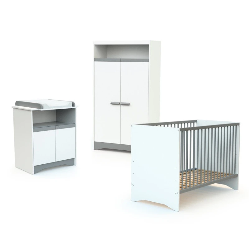 Cette chambre complète At4 est composée du lit bébé 60×120, du meuble à langer et de l’armoire Cotillon !