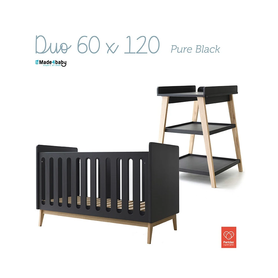 Découvrez cet ensemble composé d’un lit bébé 60×120 Pure noir et de la table à langer June et profitez de toute la qualité Périclès à prix doux.