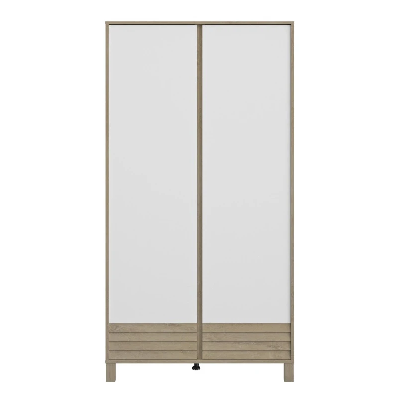 - 2 façades finition blanche, et une façade finition chêne blond, en relief, façon persienne.