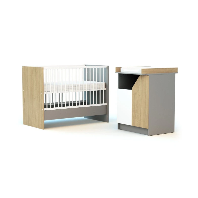Laissez-vous séduire par ce bel ensemble composé du lit 60×120 et du beau meuble à langer !