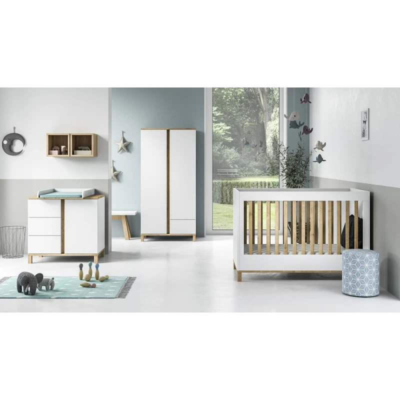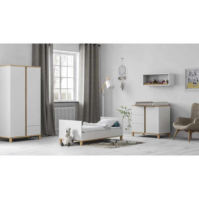 Découvrez en détail la chambre Trio avec lit 70 x 140 cm Vox Altitude blanc/bois, qui associe le magnifique lit où votre enfant peut dormir jusqu’à 7 ans environ, la commode 3 tiroirs, 1 porte avec ses grands volumes et la belle armoire 2 portes, 1 tiroir.