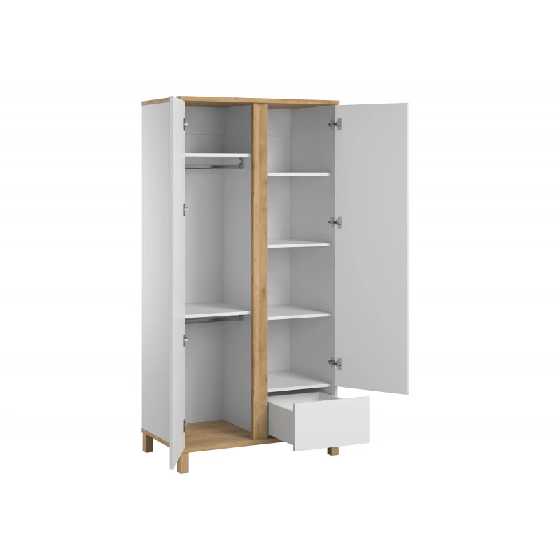 L’armoire 2 portes, 1 tiroir Altitude blanc/bois vous propose également de beaux volumes et une conception idéale pour organiser les affaires de votre bébé : une penderie avec tringles où suspendre les vêtements les plus fragiles, des étagères pour bien plier pulls et tee-shirts par exemple, ainsi qu’un petit tiroir doté d’une fermeture silencieuse. D’un coup d’œil, vous trouvez immédiatement la tenue coordonnée, adaptée à l’activité du jour !