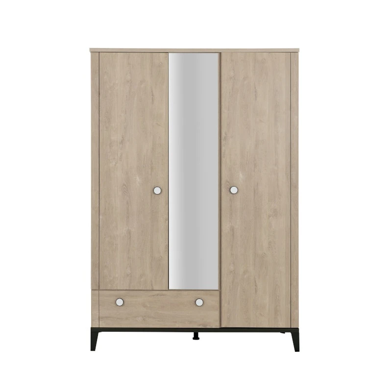 Et pour finir, la grande armoire 3 portes et 1 tiroir Galipette Marcel, aux généreuses dimensions, offre un maximum d’espace pour organiser les tenues et accessoires appartenant à votre bout de chou. Elle est équipée d’une penderie sur les 2/3 de la largeur, pour suspendre les vêtements les plus fragiles et de multiples étagères permettant de jolies piles. Le grand tiroir en bas du meuble procure un espace supplémentaire pouvant accueillir les chaussures, du linge de lit…ou quelques jeux. Et si vous êtes vraiment en manque de place, l’armoire dispose de pieds en ABS blanc, qui libèrent le dessous du meuble pour y glisser boîtes ou paniers.