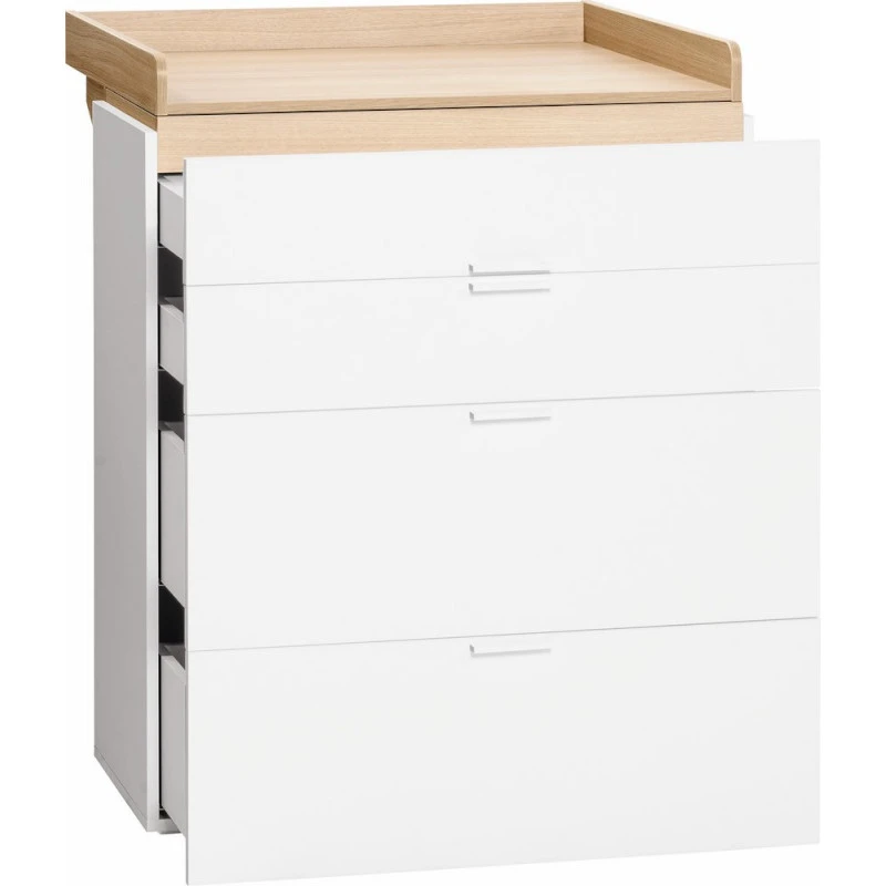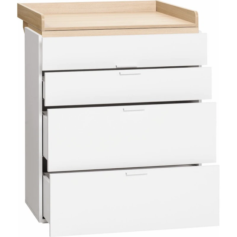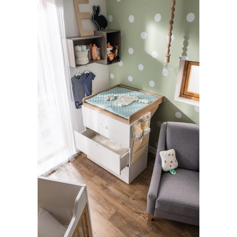 La commode 4You de Vox offre un grand espace de rangement grâce à ses 4tiroirs, idéal pour les petites affaires de bébé. Fabriquée à partir de bois de chêne massif, la commode 4You, dans les tons de blanc et bois naturel, au design scandinave, est idéale pour la chambre de votre tout petit, garçon ou fille, et s’harmonisera avec toutes les décorations. De plus, grâce à son plan à langer amovible (vendu séparément), elle se transforme en espace de change confortable et sécurisé.