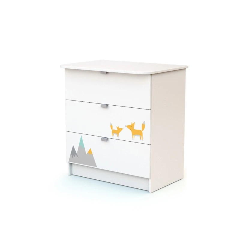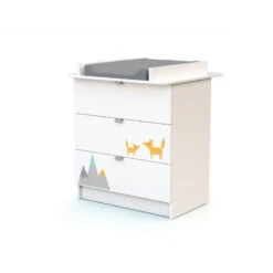 Trop craquante, cette commode de rangement Webaby est disponible en 3 style différents : tout blanc pour se coordonner à n’importe quelle décorations, version panda avec un adorable petit panda accompagné de bambous ou en version renard avec maman renarde et son petit devant des montagnes colorées ! A vous de choisir celle que vous préférez !