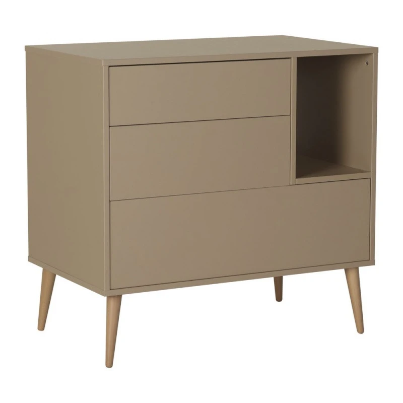 La commode Cocoon de Quax, composée de 3 tiroirs et d’une niche vous permettra de ranger les petites affaires de bébé tout en gardant à portée de main tous les produits indispensables !
