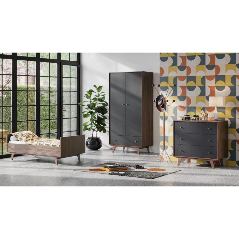 Cette collection, proposée par Vox, est conçue pour durer, et pour accompagner la croissance de votre bout de chou au-delà de sa petite enfance ! Outre la commode et son plan à langer, Mid comprend un lit 70 x 140 évolutif en lit cadet et une grande armoire.