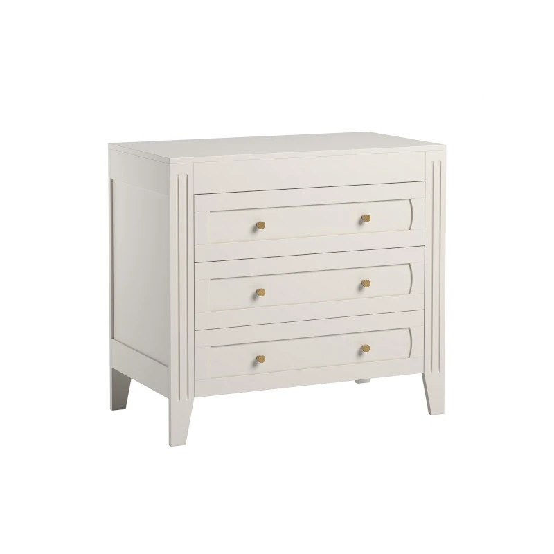 Laissez-vous charmer par cette commode 3 tiroirs Milenne de Vox ! Avec ses bords moulurés et ses poignées en métal doré, elle combine originalité et sobriété, nostalgie et modernité, design et élégance⊠Elle réunit toutes les oppositions, pour trouver sa place dans chaque ambiance de chambre. Elle existe en 3 teintes, blanc, gris clair ou bleu indigo, selon vos préférences et votre inspiration créatrice.