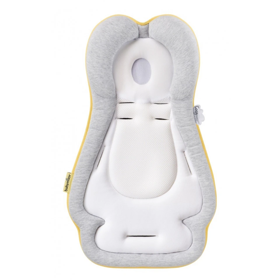 Dès la naissance, bébé est si petit qu’il est difficile de trouver la position la plus adaptée pour lui. C’est pourquoi Babymoov a créé le coussin réducteur morphologique, afin qu’il puisse être à l’aise et se reposer plus serainemant. Les rebords cale-bébé et le cale-tête ergonomiques permettent d’assurer un bon maintien du dos adapté à la morphologie de bébé tout en assurant un envelopppement rassurant. Pour permettre de conserver une tête bien ronde, le cosymorpho est conçu en mousse viscoélastique. Les matériaux aérés et matelassés confèrent une parfaite ventilation de la tête, du dos et de la nuque. Enfin, pour faciliter son utilsation il s’adapte à tout type de transat, siège auto, balancelle, nacelle (harnais 2, 3 ou 5 points).