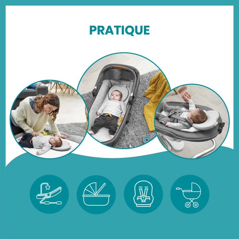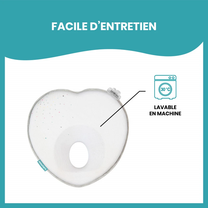 Créé et breveté par un pédiatre reconnu, le Lovenest Babymoov est le parfait cale-tête ergonomique : son inclinaison et sa forme spécifique garantissent une répartition homogène de la pression sur l’ensemble du crâne de bébé. Tout ne repose plus sur l’occiput. Votre enfant conservera ainsi une tête bien ronde, sans gêner son confort et ses mouvements durant son sommeil. Vous pourrez l’utiliser partout : dans le lit, transat, balancelle, nacelles, sièges-auto et poussette. Pratique !