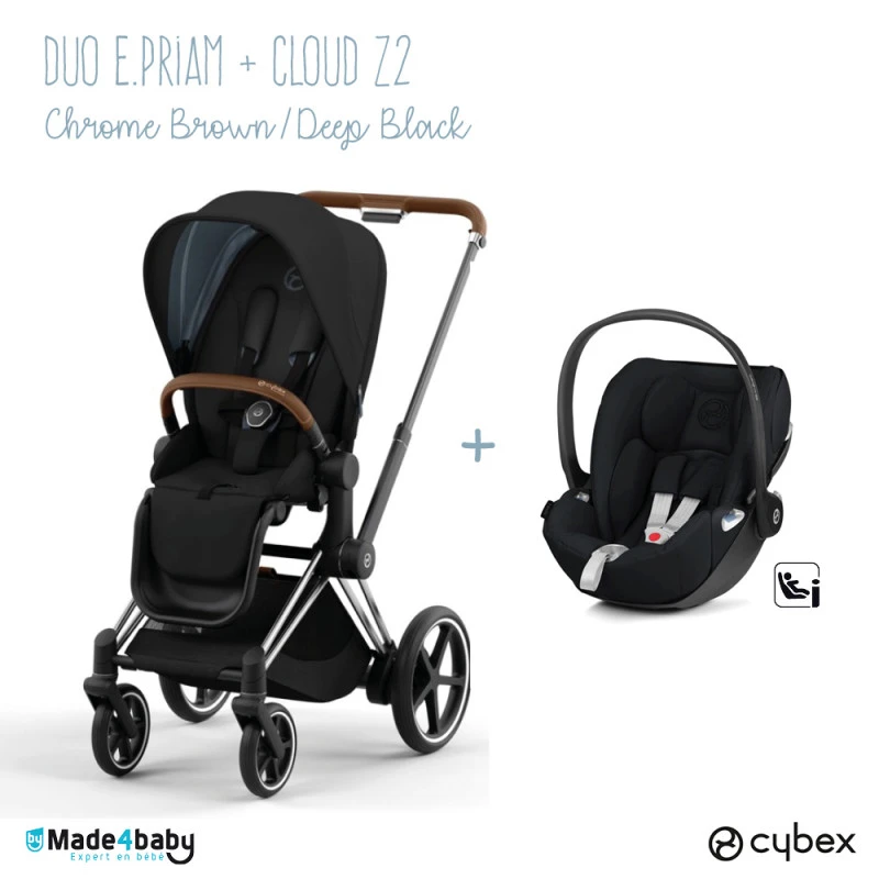 Pour être sûre de répondre à tous vos besoins, la poussette ePriam peut être transformée en Travel System en ajoutant la coque Cloud Z2 i-Size de Cybex qui présente les dernières innovations en matière de sécurité.