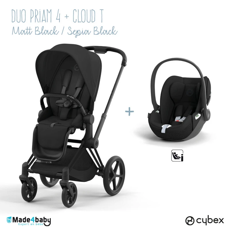 Nous vous proposons cet ensemble Cybex duo composé du châssis Priam, de l’armature d’assise, de l’habillage du siège et du siège auto Cloud T, un véhicule 5 étoiles pour bébé !