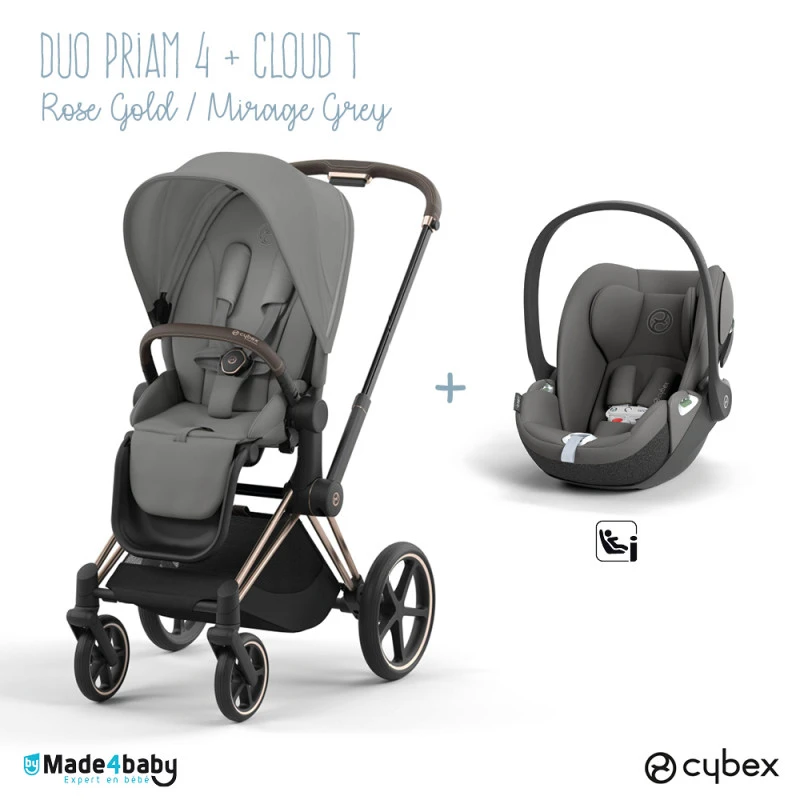 Nous vous proposons cet ensemble Cybex duo composé du châssis Priam, de l’armature d’assise, de l’habillage du siège et du siège auto Cloud T, un véhicule 5 étoiles pour bébé !