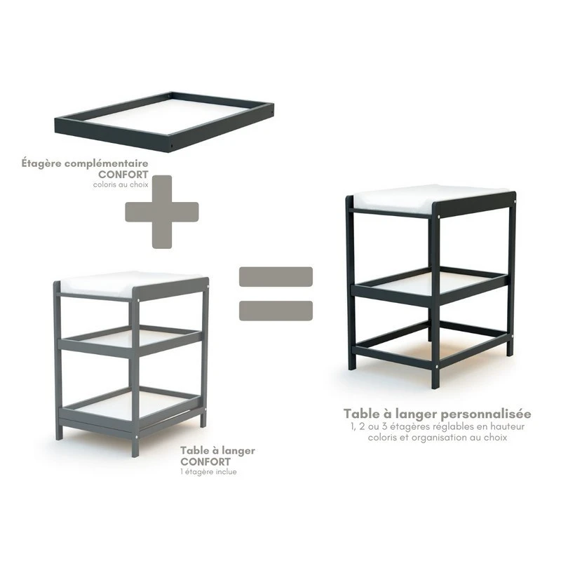 L’étagère complémentaire At4 s’adapte sur la table à langer Confort At4 pour pouvoir ajouter des espaces de rangements supplémentaires selon vos besoins.
