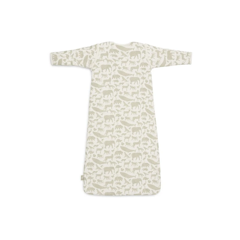 Cette gigoteuse 2ème âge avec manches de Jollein est réalisée avec un coton imprimé d’animaux sauvages magnifiques, couleur vert olive sur fond écru. Sachez qu’elle existe également avec des motifs nougat.