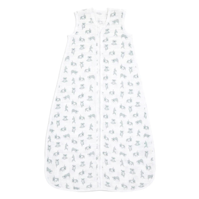 Cette gigoteuse en coton Aden & Anaïs, sans manches pour une meilleure régulation de la température de bébé s’enfile par-dessus le pyjama et s’ouvre par le bas avec une fermeture éclair pour faciliter les changes nocturnes.