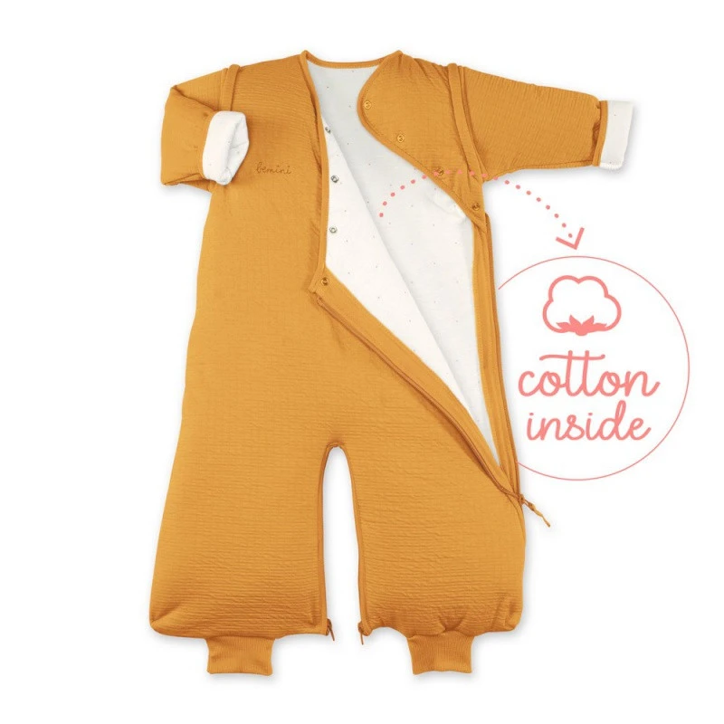 Pratique, la gigoteuse Magic Bag de Bemini dispose de manches amovibles et d’une grande ouverture croisée sur l’avant qui facilite l’habillage et le déshabillage de votre enfant. Si vous voulez l’utiliser dans le siège auto ou la poussette, les fermetures éclair modulables permettent de séparer les jambes, et favorisent ainsi le passage du harnais au plus près du corps de votre pitchoun.