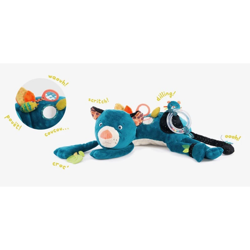 Elle est magnifique cette grande panthère d’activités Zimba Dans la Jungle Moulin Roty avec toutes ses couleurs, et tellement douce et moelleuse que bébé pourra s’y blottir pour de gros câlins… et de belles galipettes !
