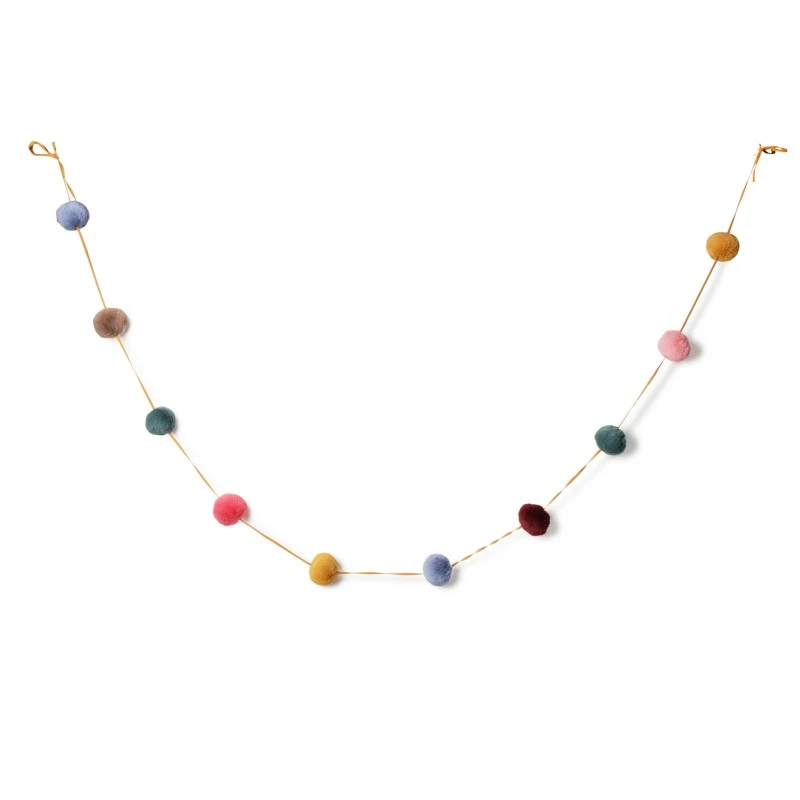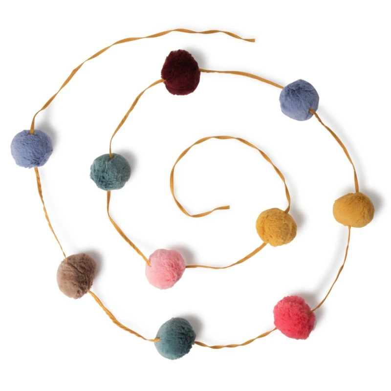 La guirlande de pompons Picca Loulou propose en alternance d’adorables pompons unis de toutes les couleurs : bleus, verts, roses, jaunes, taupes, etc… Elle donnera un air poétique et bohème à la chambre de votre enfant.