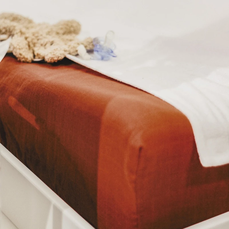 Disponible en plusieurs coloris, la housse est lavable en machine à 40° et permet de faciliter l’entretien de votre matelas à langer Sofalange.