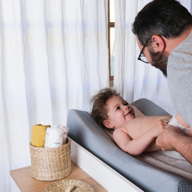 Disponible en plusieurs coloris, la housse est lavable en machine à 40° et permet de faciliter l’entretien de votre matelas à langer Sofalange.