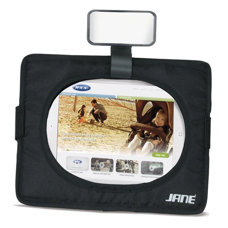 Votre enfant est plus grand et s’ennuie pendant les longs trajets… Retournez le miroir de surveillance Jané et découvrez la housse universelle pour tablette, où installer la plupart des modèles même les minis, verticalement ou horizontalement. Le temps passe plus vite avec ses dessins animés préférés !