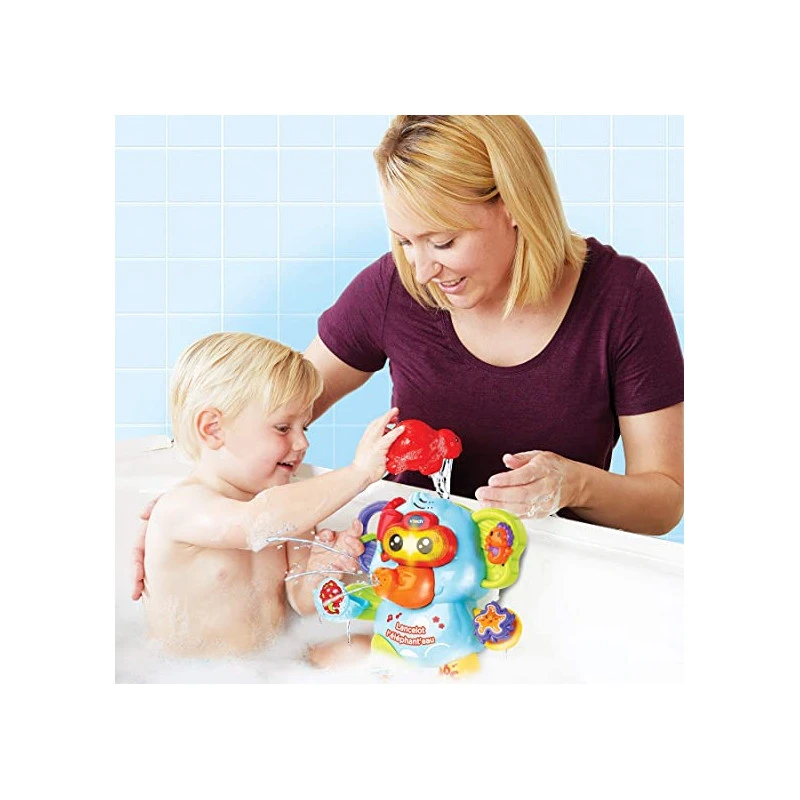 Lancelot l’éléphant’eau VTech est un jouet de bain désopilant ! Il propose 6 activités différentes sur ses pattes et ses oreilles, qui égayent les baignades de votre bout de chou et les rendent encore plus ludiques : des anneaux à faire coulisser, un hippocampe-poussoir, un poisson à remplir, une étoile de mer à faire tourner, etc.