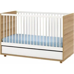 Coloris : Barreaux et tiroir blancs, structure bois naturel