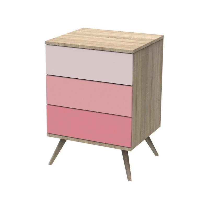 Découvrez ce superbe lit combiné évolutif 60 x 120 Sauthon Seventies rose, tout droit inspiré des années 50 et conçu pour créer un univers unique à votre fillette. Dans un style rétro très à la mode, élégant et original, il se fond dans tous les styles de décoration, et peut s’associer à l’armoire de la même collection, si vous avez besoin de plus de rangement. Il juxtapose différentes nuances de rose sur les façades des tiroirs avec la chaleureuse couleur chêne doré, et propose une superbe touche déco supplémentaire : les pieds inclinés en bois massif !