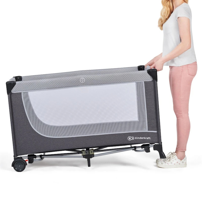 Leody de Kinderkraft est un lit de voyage pratique, qui se plie, se dĂ©plie en un instant et se range bien compact dans son sac de transport. Il est Ă©quipĂ© de 2 roues avec frein, afin de faciliter son dĂ©placement d’une pièce Ă l’autre. Pour les plus petits, il dispose aussi d’un système de surĂ©lĂ©vation du matelas utilisable jusqu’à 6 mois environ, qui vous permet de coucher ou de lever votre nourrisson sans vous plier.Â