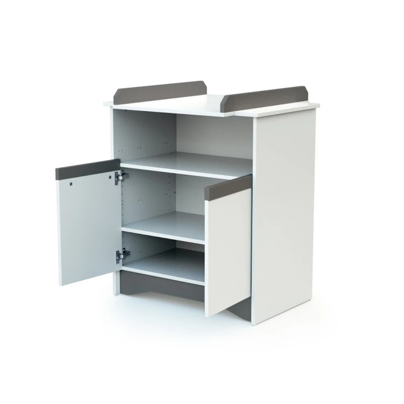 Découvrez le meuble à langer Cotillon par At4, très moderne et enfantin grâce à ses petites touches colorées composé d’un large espace de rangement avec une niche ouverte et de deux portes en partie basse pour pouvoir accueillir toutes les petites affaires de bébé et ainsi les garder à portée de main !