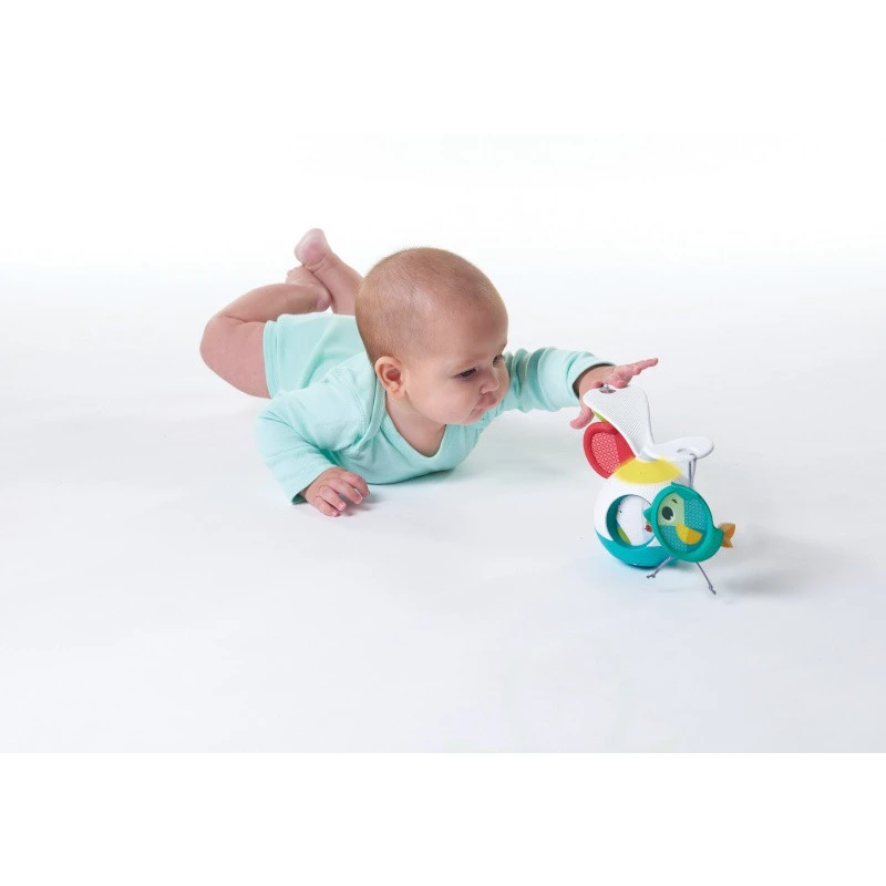 Ce mobile au sol favorise l’éveil et le développement sensoriel de bébé, sa motricité et sa cognition grâce à ses multiples facettes captivantes et à sa jolie musique !