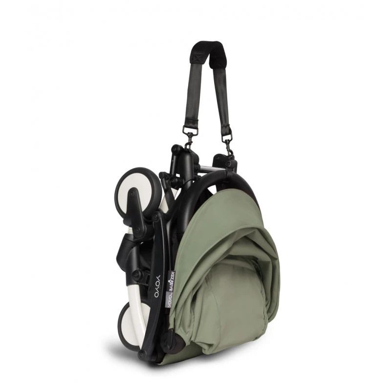 Le pack poussette Yoyo2 6 mois+ comprend : Châssis, assise 6 mois+, un coussin molletonné, capote, panier shopping, bandoulière et housse de protection.