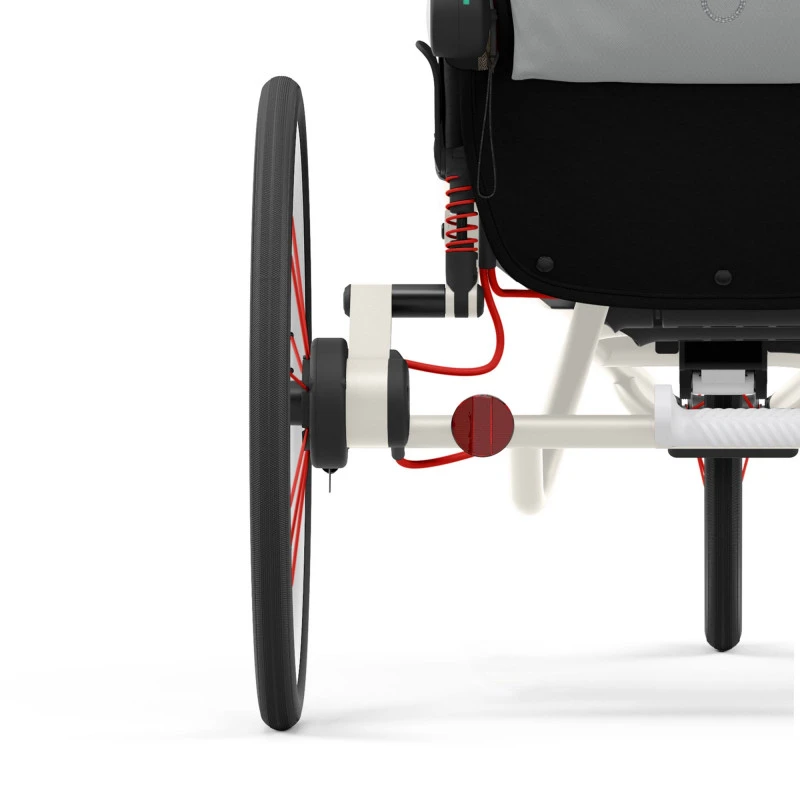 Cette poussette Zéno a la particularité d’être ajustable en hauteur afin de baisser le centre de gravité de la cabine en fonction du sport que vous pratiquez, ainsi, l’adhérence au sol sera plus forte pour un maximum de sécurité !