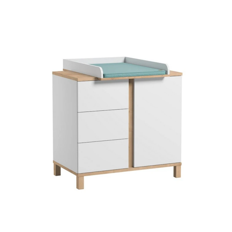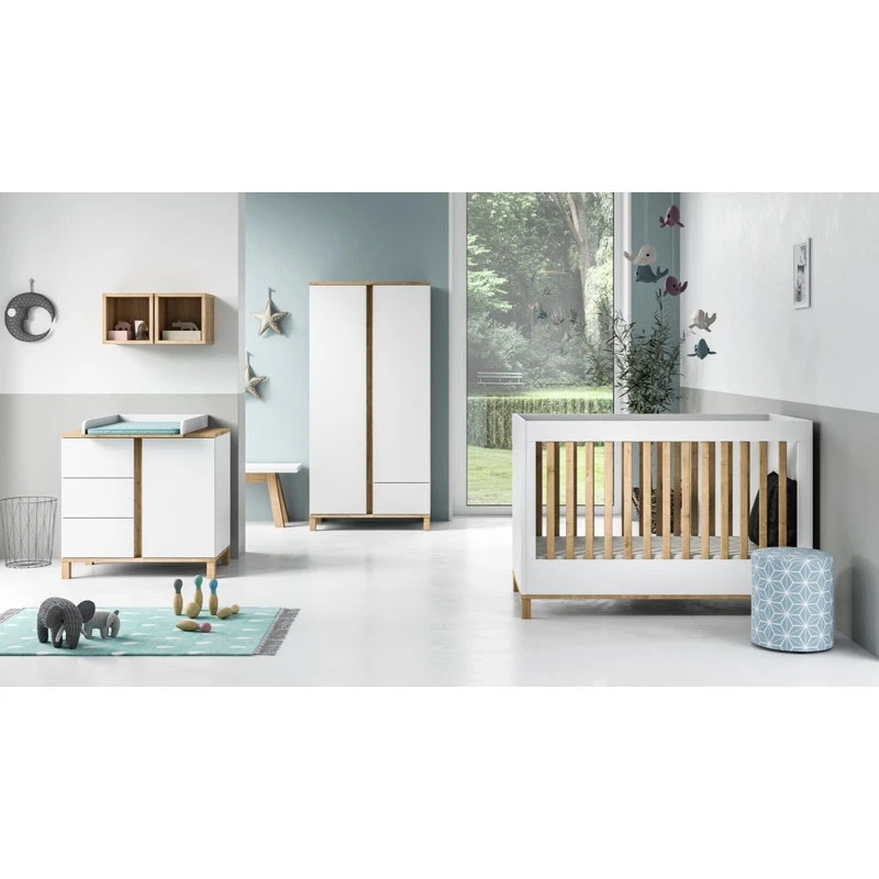Le plan à langer Vox Altitude blanc/bois associe élégamment la couleur blanche et le chêne massif, pour se coordonner parfaitement aux autres éléments de la même collection. Vous y retrouvez un lit 60 x 120 cm ou 70 x 140 cm, une commode 1 porte, 3 tiroirs sur laquelle s’installe ce plan à langer ainsi qu’une armoire 2 portes.