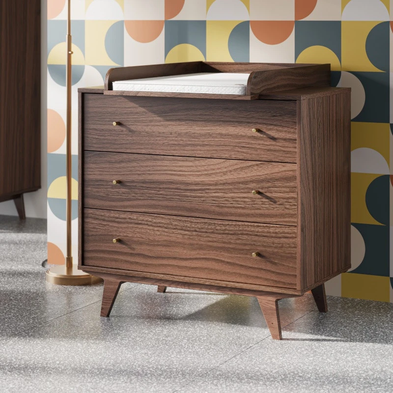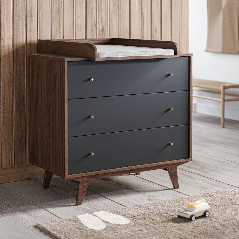 Votre choix s’est porté sur la commode Mid de Vox, élégante et pratique avec ses 3 spacieux tiroirs. Savez-vous que, accompagnée de son plan à langer assorti, elle peut aussi s’avérer très utile pour habiller ou changer la couche de votre nourrisson, sans ajouter de meuble supplémentaire dans la chambre ?