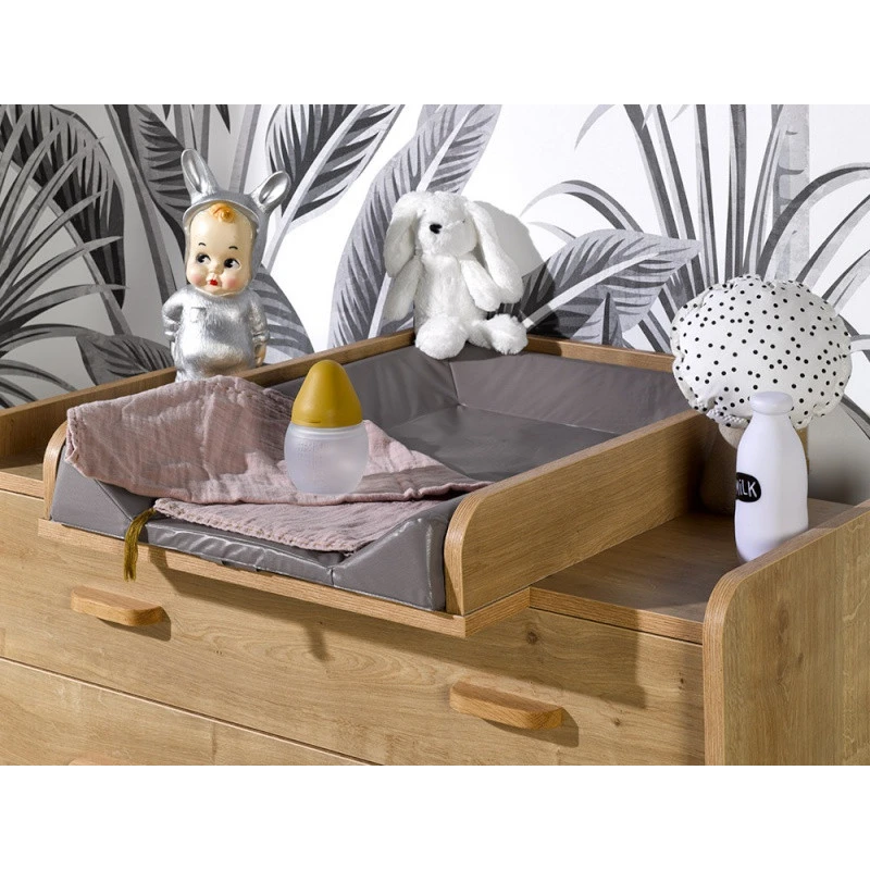 Intemporelle et vintage, la commode Caprice conçue par Petite Histoire est très pratique. En effet, en fixant simplement le plan à langer Caprice, vous la transformerez en commode à langer pour ainsi pouvoir profiter d’un espace de lange confortable et sécurisé pour vous occuper de bébé en toute sérénité.