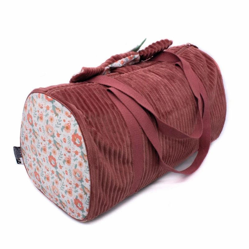 Le sac de voyage Mélimélos la biche Les Déglingos est plutôt chouettos ! Il est composé d’un joli velours côtelé terracotta, allié à un tissu imprimé de motifs fleuris. Il est équipé de deux grandes anses pour le transporter facilement à la main ou à l’épaule, d’une fermeture à glissière et d’une poche intérieure. Et il passe en machine à laver !