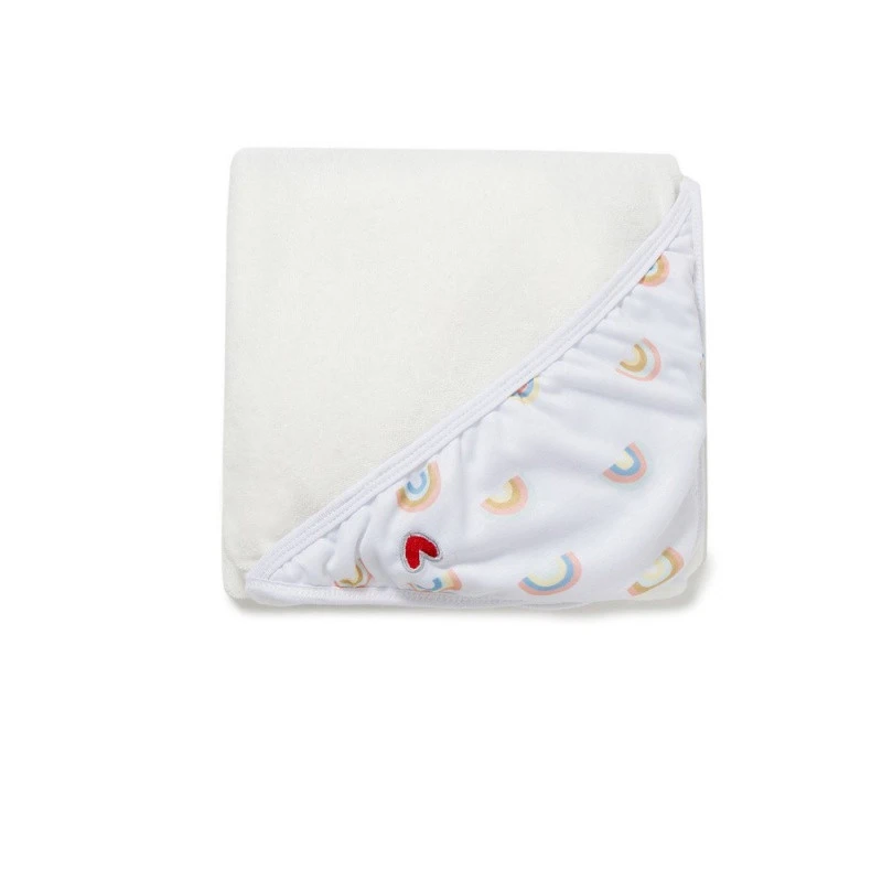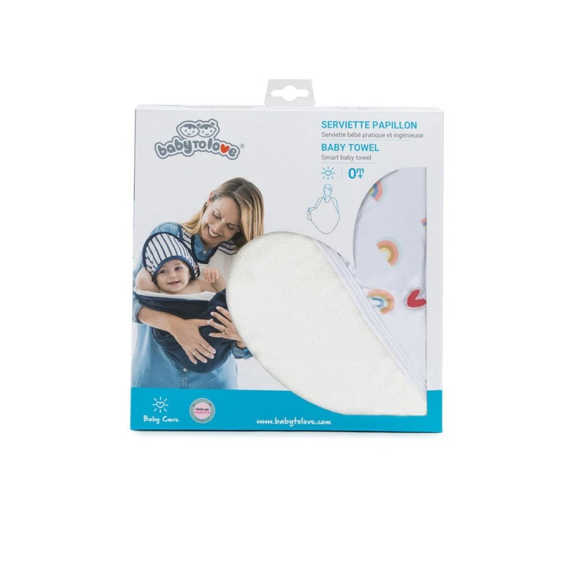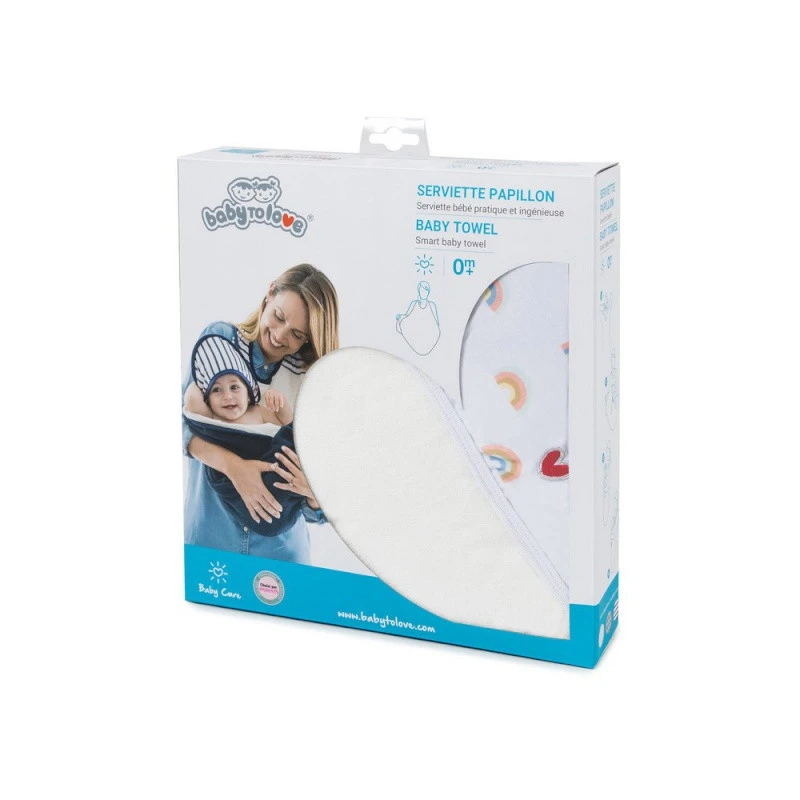 Essentiellement unie blanche, délicatement rehaussée par un imprimé plein d’arcs en ciel colorés, la serviette papillon BabyToLove Rainbow est raffinée et intemporelle. Un joli cadeau utile à ajouter sans tarder à votre liste de naissance !