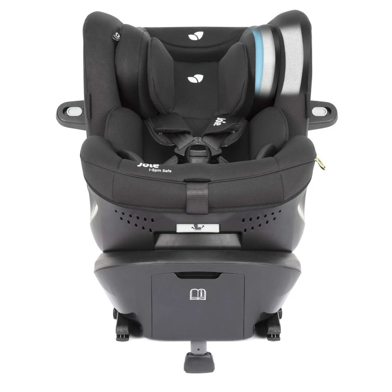 Le siège-auto i-Spin Safe de Joie offre 6 positions d’inclinaison ; il pivote d’une main face à la portière, et facilite ainsi l’installation ou la désinstallation de votre enfant sans vous faire mal au dos ; il est équipé d’une têtière composée de 3 couches, dont une en mousse à mémoire de forme (Intellit Fit™), et ajustable en hauteur en même temps que le harnais. De plus, le siège dispose de protections latérales renforcées à déployer côté portière, pour plus de sécurité encore.
