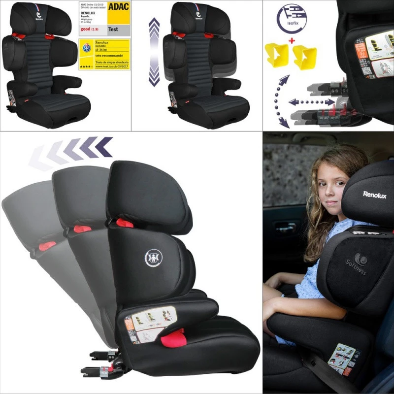 Le siège auto Renofix de Renolux est conforme aux exigences de sécurité en vigueur, et est homologué R44-04, Il a également obtenu l’excellent résultat de 4 étoiles à l’Eurotest ainsi que la note Gut à l’ADAC.