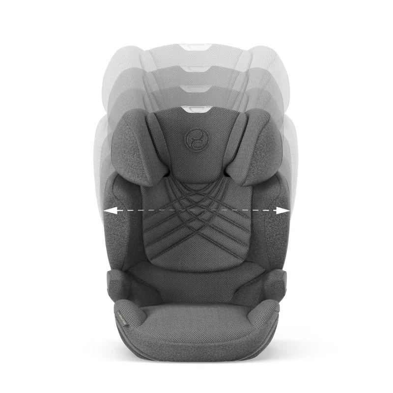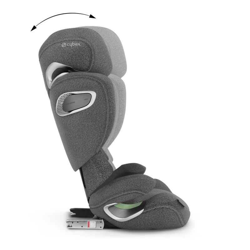 Le dossier du Solution T i-Fix s’incline pour s’adapter à tous les véhicules, s’ajuste sur 12 hauteurs selon la morphologie de son occupant, et entraîne simultanément l’élargissement au niveau des épaules. La conception du siège favorise la circulation de l’air et maintient une température agréable, quelle que soit la saison.