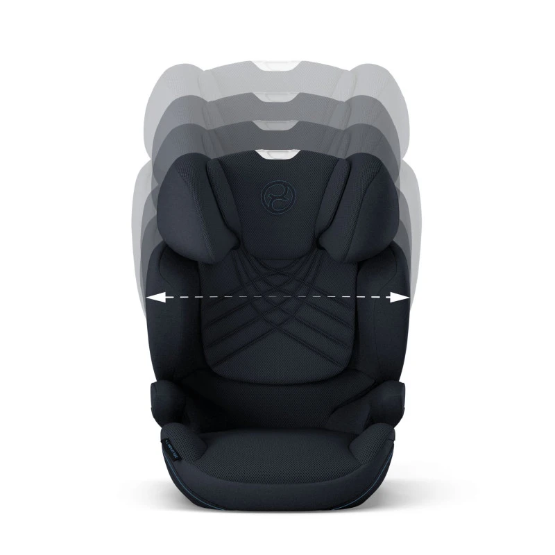 Le dossier du Solution T i-Fix s’incline pour s’adapter à tous les véhicules, s’ajuste sur 12 hauteurs selon la morphologie de son occupant, et entraîne simultanément l’élargissement au niveau des épaules. La conception du siège favorise la circulation de l’air et maintient une température agréable, quelle que soit la saison.