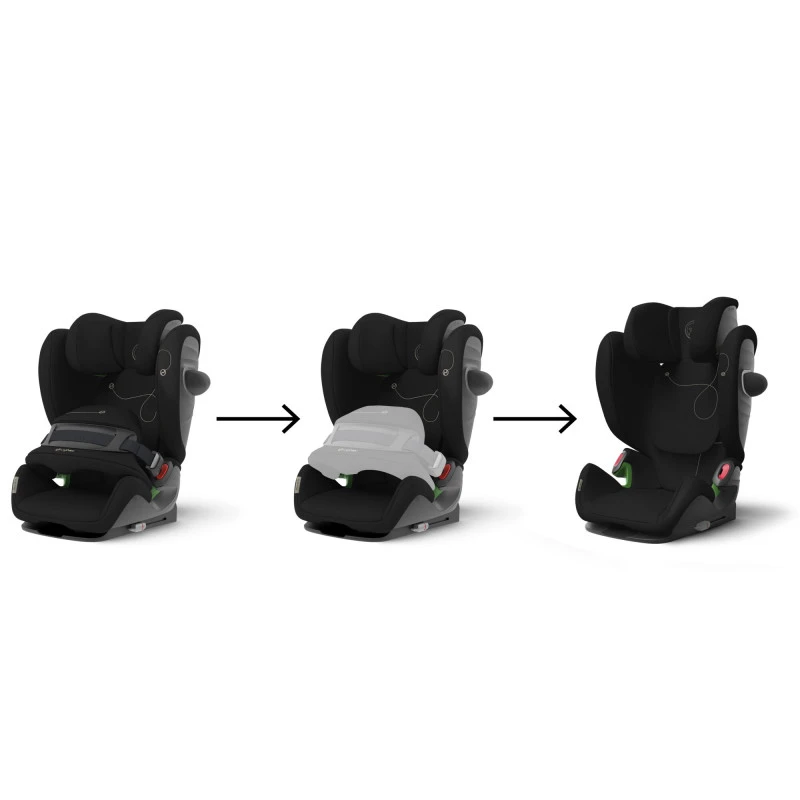 Par la suite, une simple manipulation permet de transformer le siège auto Pallas G i-Size Cybex en rehausseur pour une utilisation en mode jusqu’à 150 cm (environ 12 ans).