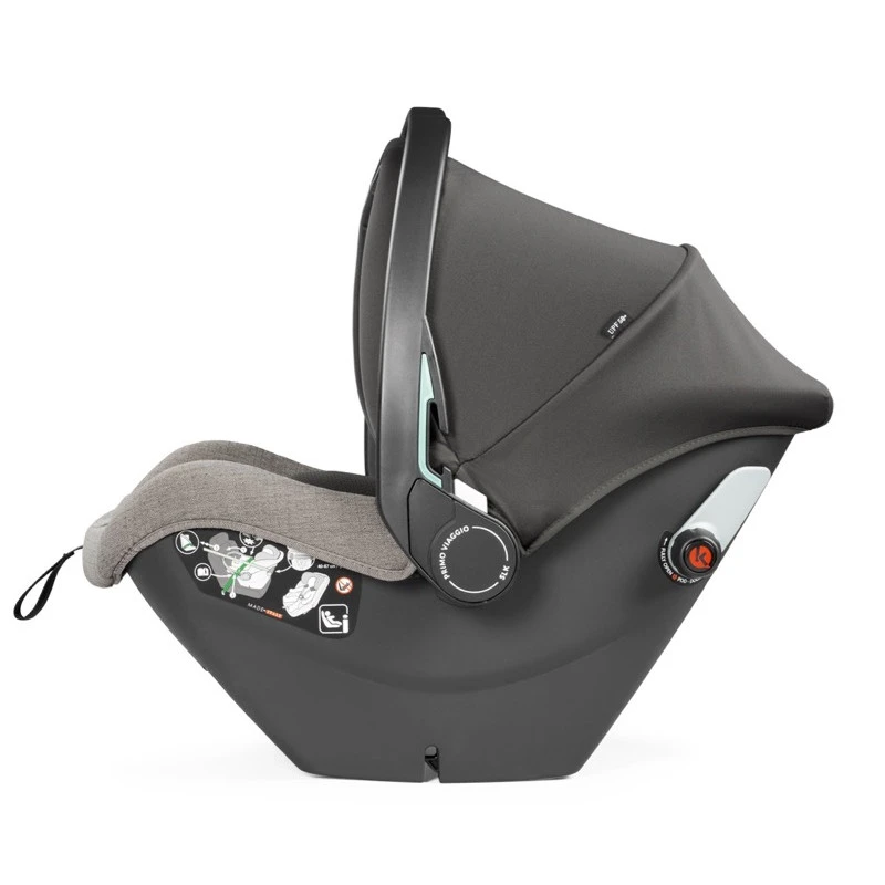 - S’accroche en un seul geste sur les poussettes Peg Perego et les poussettes d’autres marques avec des adaptateurs spéciaux (en option)