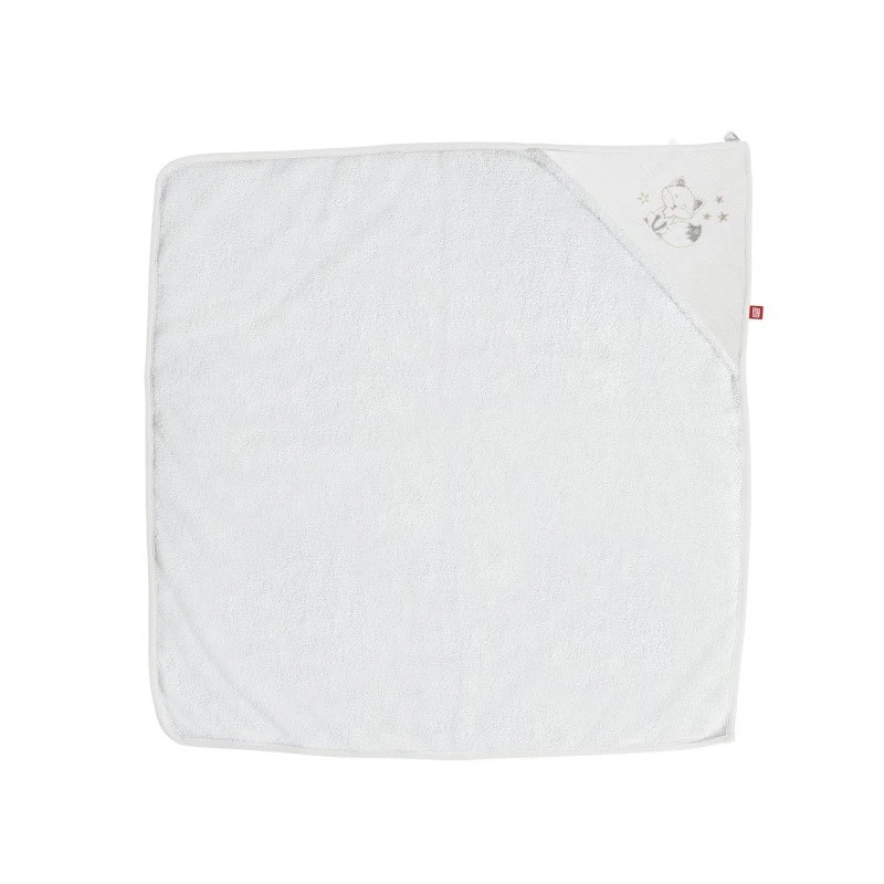 Elle est dans les tons de blanc, avec une jolie petite capuche grise ! La sortie de bain est un indispensable du quotidien de bébé, et ce dès la naissance, n’oubliez pas de la prendre dans votre valise de maternité !
